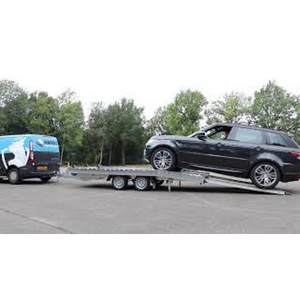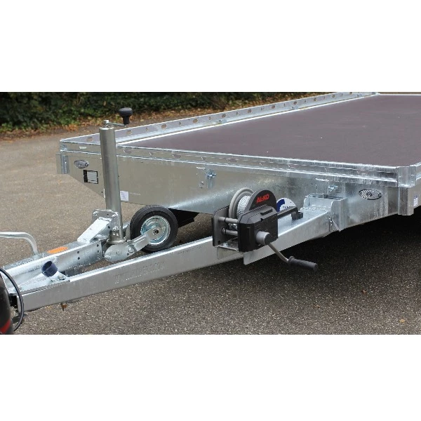 Deze dubbel-assige autotransporter is ideaal voor het vervoeren van personenwagens en bestelwagens. De aanhanger is voorzien van een set oprijrampen en manuele lier voor het laden en lossen te vergemakkelijken. Ook zijn er steunpoten voorzien om stabiliteit te vrijwaren.