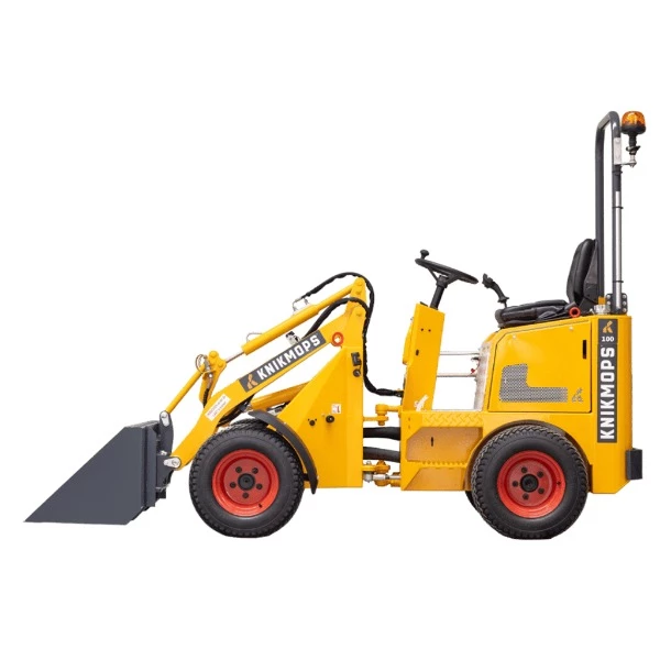 De Knikmops KM100 is een compacte en uiterst wendbare kniklader, ideaal voor lichte grondverzet- en transportklussen. Door zijn kleine formaat en het knikbesturingssysteem is deze machine bijzonder geschikt voor het werken in smalle of moeilijk bereikbare ruimtes, zoals tuinen, op bouwterreinen of in stedelijke omgevingen. De KM100 is ontworpen voor veelzijdigheid, waardoor hij geschikt is voor zowel lichte graaf- als laadwerkzaamheden, maar ook veel gebruikt wordt voor bestratingswerkzaamheden. Met behulp van een steenklem kan je makkelijk klinkers bij rijden over pas gelegde klinkers.