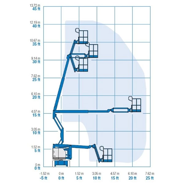 Deze machine is voorzien van een JIB met kantelbare korf waardoor je op nog meer plaatsen kan geraken.