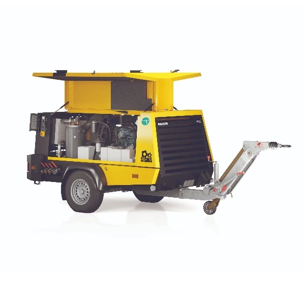 Mobiele dieselcompressor om perslucht te leveren voor allerhande persluchttoepassingen. Dit apparaat is uitgevoerd als aanhangwagen, en wordt vaak verhuurd met breekhamer of als depannagecompressor.