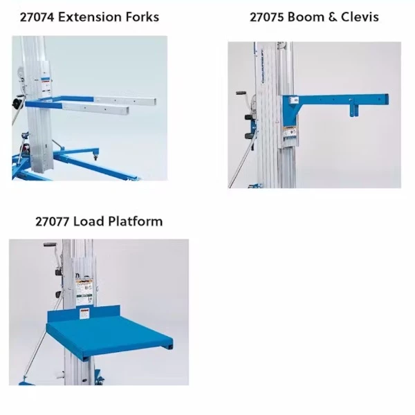 Het hefvermogen van deze montagelift is 365 kg met een maximum hoogte van 6,5 meter.