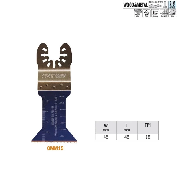 Multitoolzaagblad voor alle houtproducten, glasvezel, epoxy, kunststoffen, plaatmetaal, koper en aluminium.