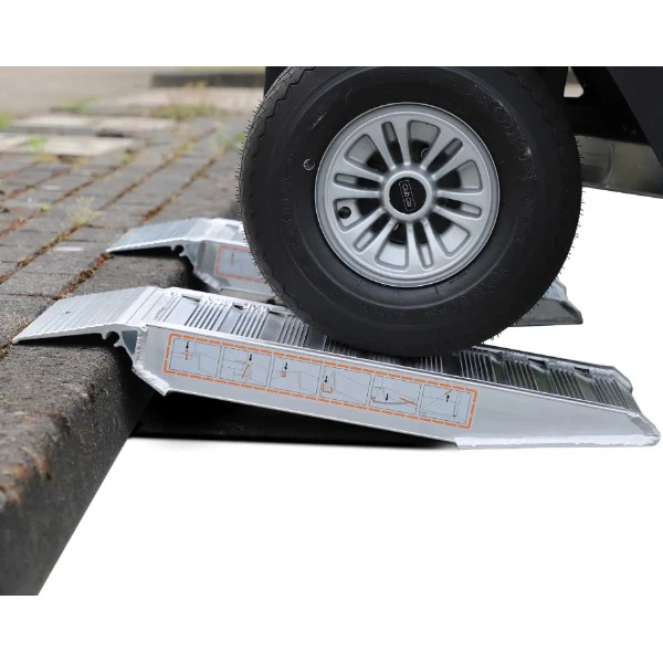 Oprijramp voor het makkelijk laden en lossen van machines tot 3000 kg. Deze wordt vooral gebruikt bij tuinmachines zoals knikladers, minigravers, minitraktors, ... .