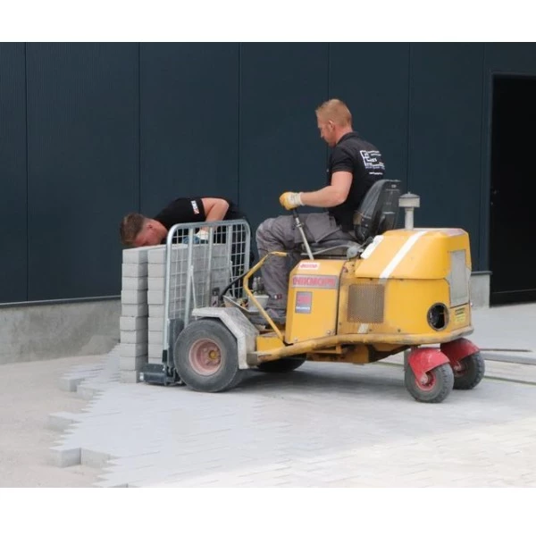 Deze kleine wendbare machine is speciaal ontwikkeld om klinkers bij te rijden over pas gelegde klinkers. Dit is mogelijk omdat zijn eigen gewicht slechts 475 kg is. De vlotte besturing wordt gegarandeerd door de stuurhendels. Deze stellen de chauffeur in staat te schranken of met de transportmachine soepel om de as te draaien.