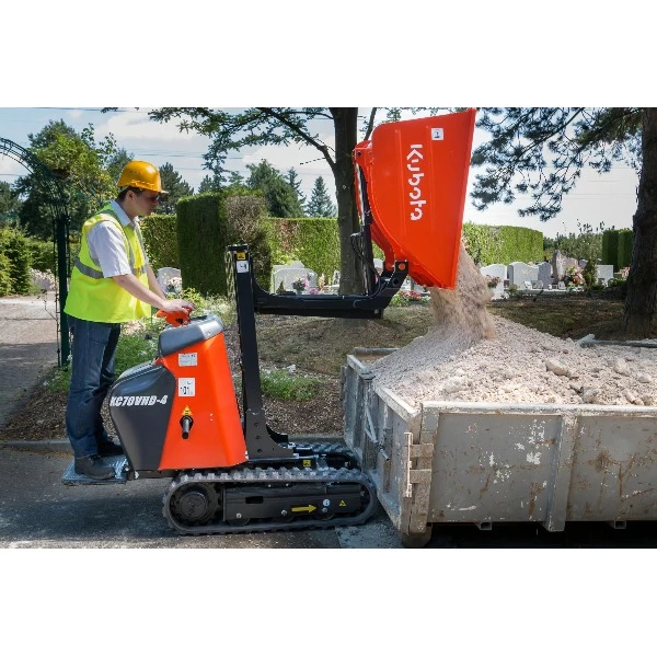 Door zijn rupsaandrijving kan deze dumper ter plaatse draaien en heeft hij geen problemen met ongelijke of drassige ondergronden.