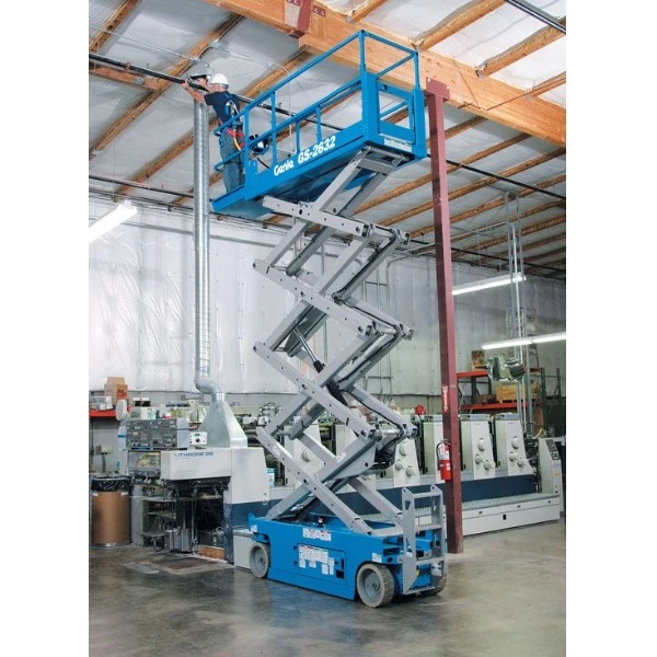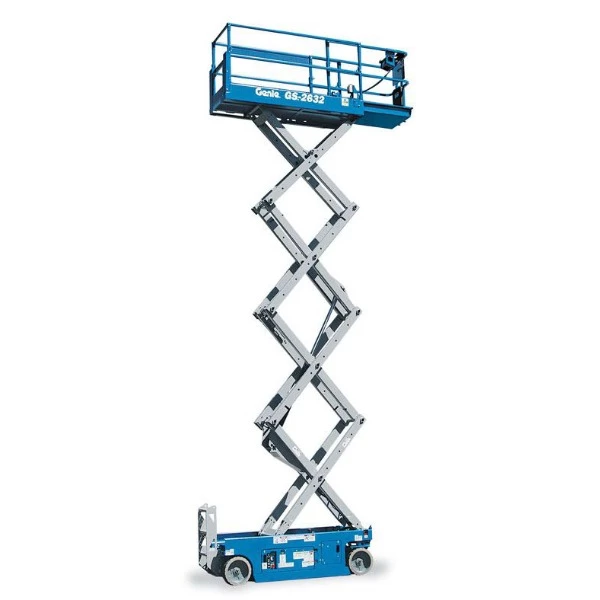Deze zelfrijdende elektrische schaarlift op batterijen kan gebruikt worden voor binnen en buiten werkzaamheden. De schaarlift is voorzien van non-marking banden, waardoor deze geen zwarte sporen achterlaten.