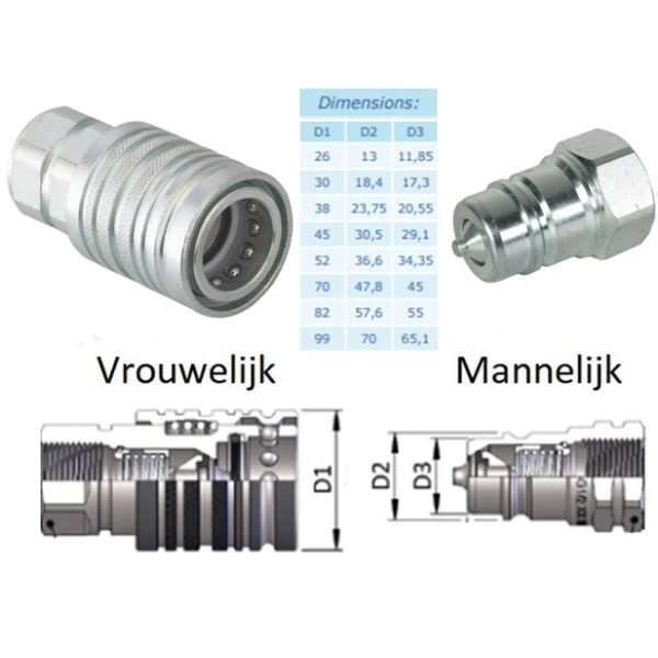 Maat schroefkoppelingen: (zie afbeelingen ter verduidelijking)